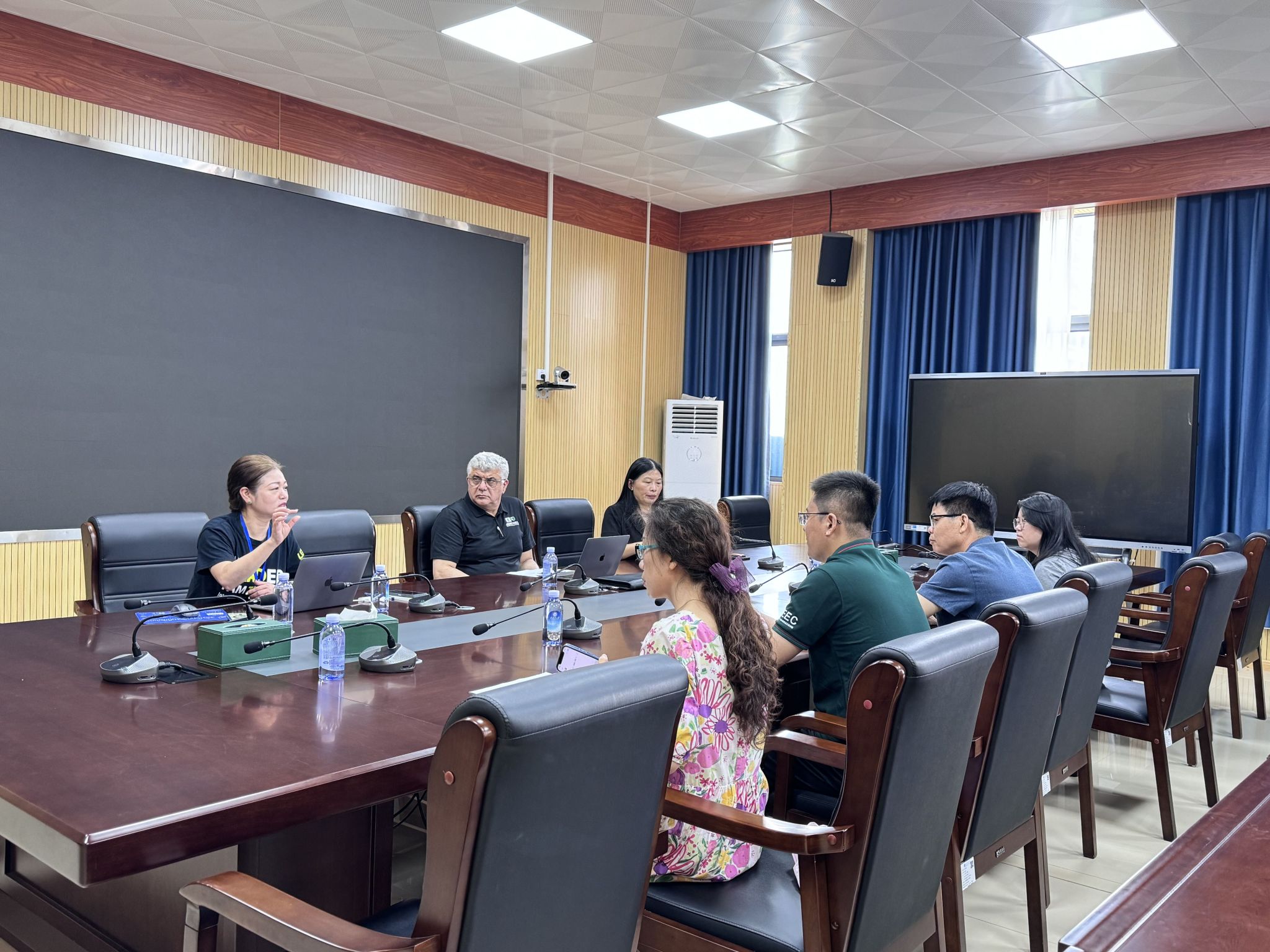 5月22日上午,我院举行2024级人才培养方案修订交流会议。美国东密歇根大学工程与技术学院院长Qatu、国际合作项目主任Eva Blank和Qin Hu教授与我院领导和教师共同参会。在座谈会上,双方就中美双方办学特色凝练、美国ABET工程认证、实验室建设、2024级人才培养方案修订、中美双方师资队伍建设、中方教师报考美方博士和学生分流机制等相关事宜进行了深入讨论和交流。