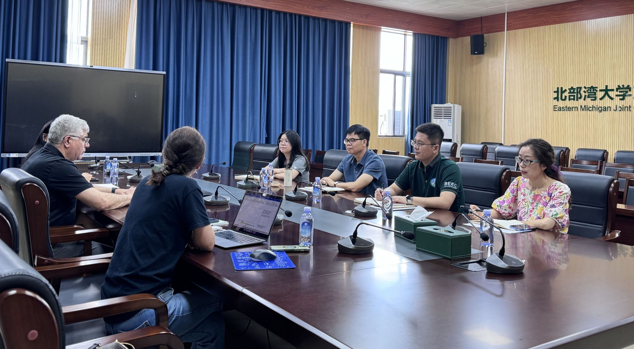 在座谈会上,梁家海常务副院长首先对Qatu院长一行的到来表示热烈欢迎,同时也对美国东密歇根大学工程与技术学院近三年来对北部湾大学东密歇根联合工程学院国际化办学所提供的优秀师资队伍和政策支持表示感谢。梁院长对学院的基本情况作了简要介绍,他表示,北部湾大学东密歇根联合工程学院高度重视即将开展的美国ABET工程认证,这对我院学生的高质量培养、北部湾大学综合办学实力提升以及国际化教育新模式探索等均具有重要意义,我院将全力做好相关工作,也希望得到美国东密歇根大学的更多支持和配合。