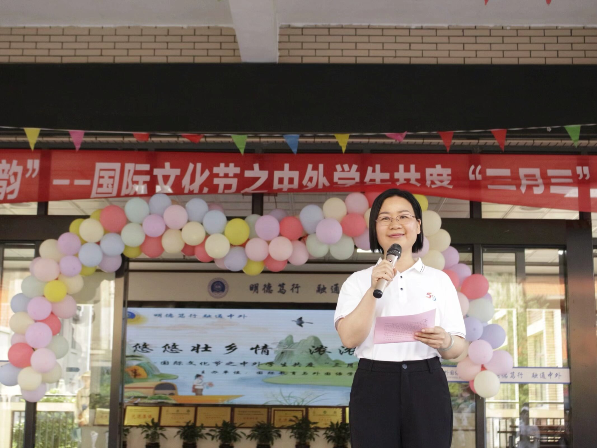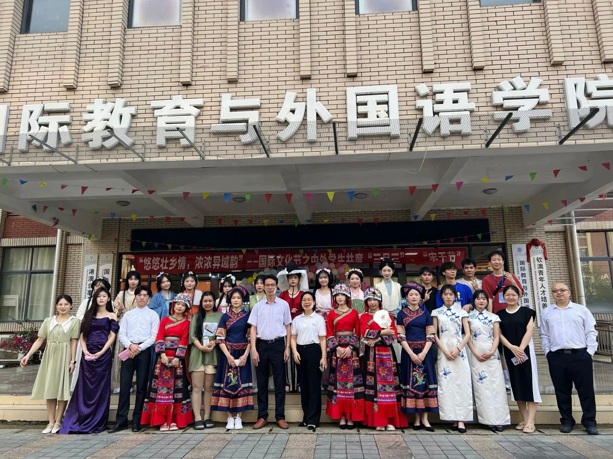 为加强大学生民族团结教育,营造外语文化氛围,丰富校园文化生活,我院于4月23日举办了以“悠悠壮乡情,浓浓异域韵”为主题的中外学生共度“三月三”“宋干节”活动。党委副书记伍红艺、副院长蔡成龙出席本次活动,我院在校中外学生参加活动。