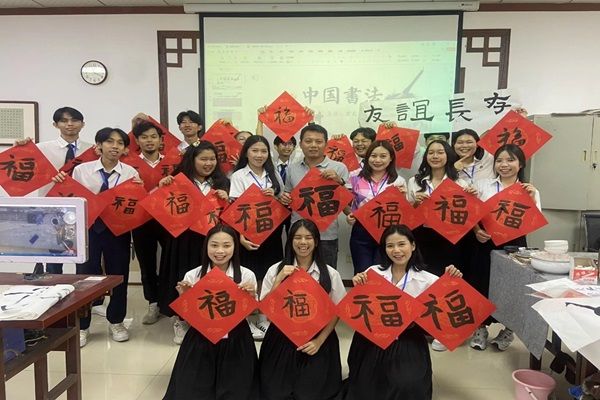 6月17日至26日的研学活动中,泰国师生沉浸式体验中华传统文化,学习茶艺、书法、剪纸和坭兴陶制作,在茶香、墨香与手工实践中感受文化魅力,于书法课上写下 “中泰一家亲”,寄托美好情谊;参与武术、民歌课程,在太极拳刚柔并济与民歌悠扬旋律中领略中国文化。在人工智能课程等课程,促进语言学习与科技前沿探讨,激发创新兴趣。