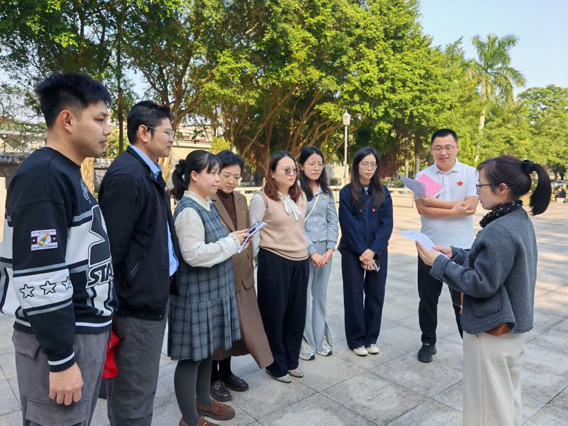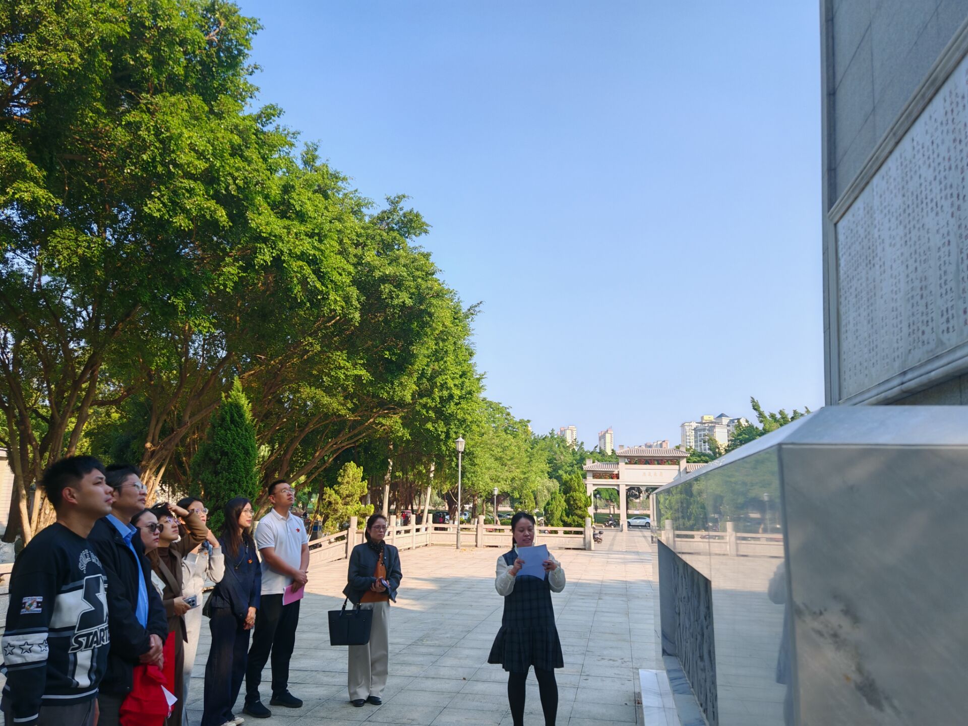 郭杏同志为大家介绍牛圩坡英雄纪念碑中牺牲英雄的故事