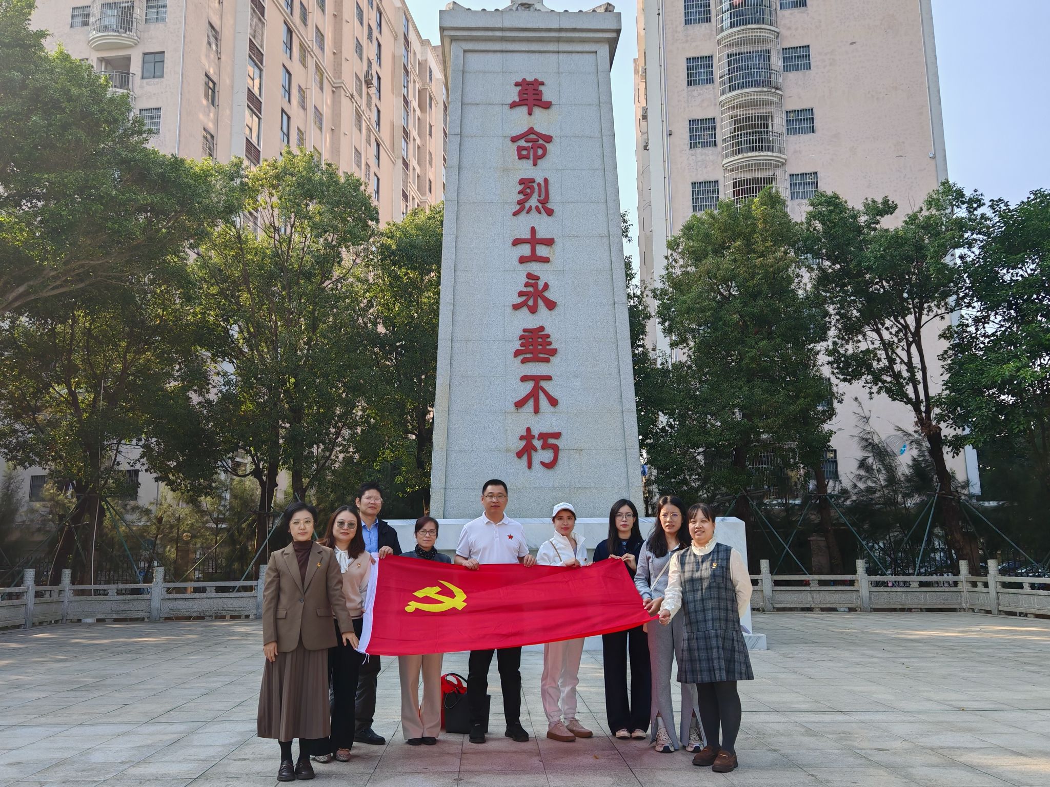 支部全体党员(含积极分子)在牛圩坡英雄纪念牌前合影留念