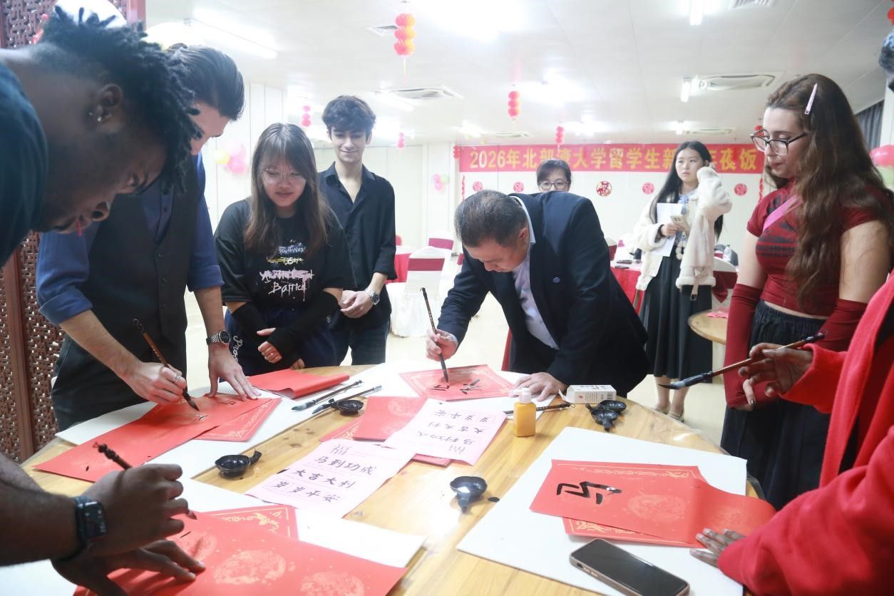 2026年2月12日晚,北部湾大学国际交流处(国际教育学院)精心组织2026年留学生新春年夜饭活动。副校长闫松银、相关职能部门负责人与来自喀麦隆、加纳、摩洛哥、尼日利亚等国的留校留学生欢聚一堂,共庆马年新春。